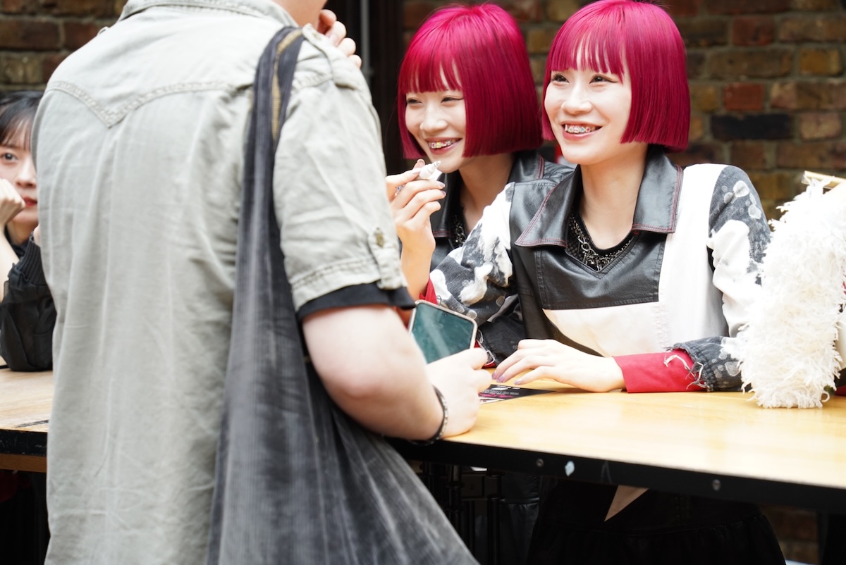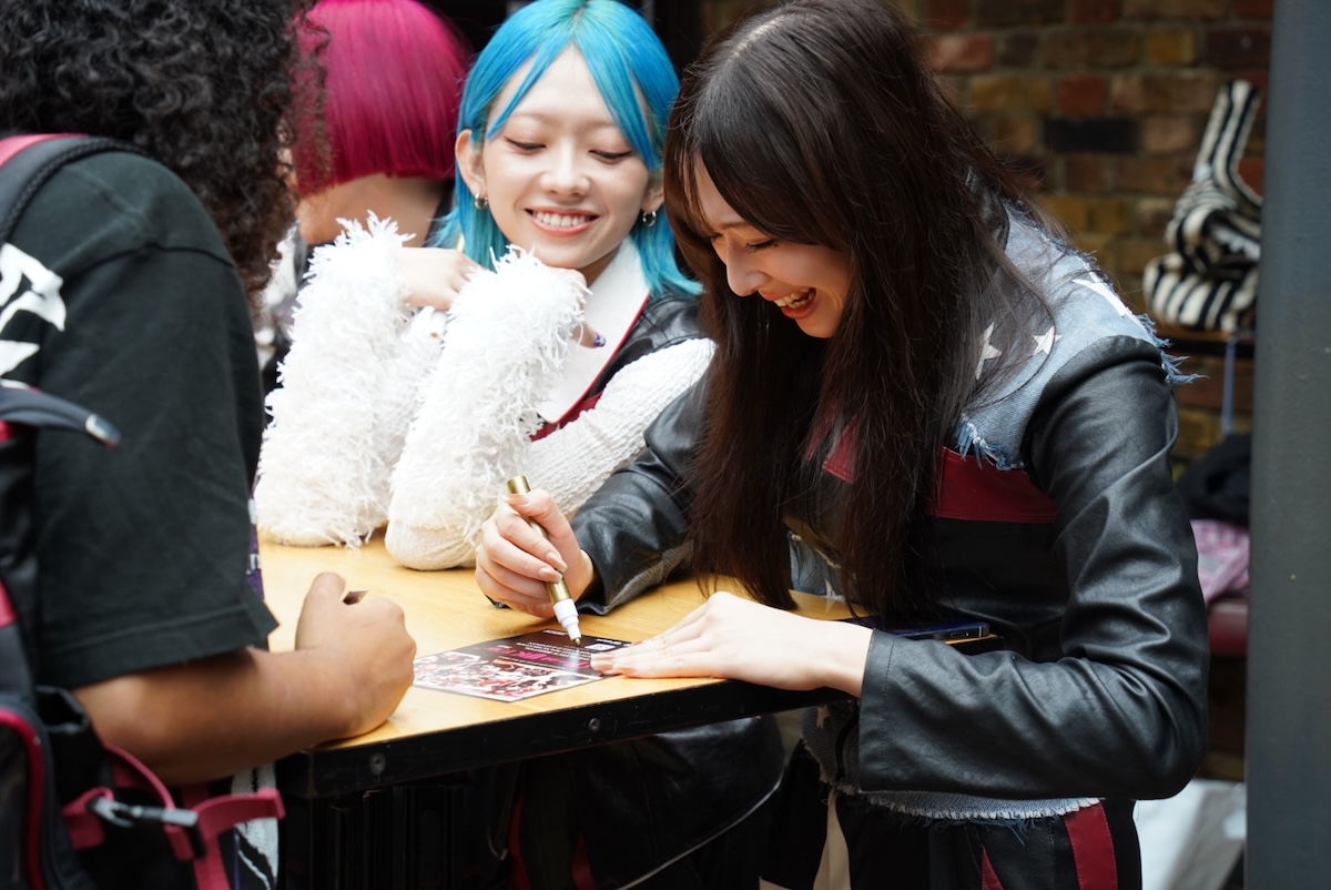 Two days before the tour’s opening night, the eight members appeared at The World’s End, located in the same building as The Underworld. Fans, known affectionately as “ROGUES,” gathered at the venue to draw random cheki photos and enjoy direct interaction with the members, receiving autographs on tour flyers along with their snapshots.